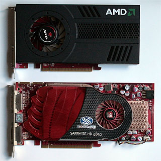 性能的には、FX-60@2.7GHzとの組合せで3Dmark06のスコア(1024x748)がHD4850の10556(CORE:675 MEM:1000)に対して10908(CORE:775 MEM:1000)と同等であり、CPUが足を引っ張っているようです。