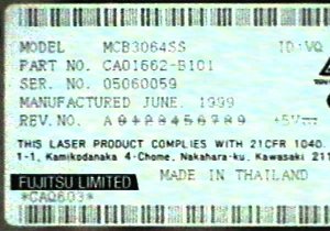 富士通製の3.5inch 640MB 4300rpmの SCSI MOドライブで1999年8月に自作初号機用にバルクで37950円で購入しました。ラベルにはMADE IN THAILANDとの記述があります。