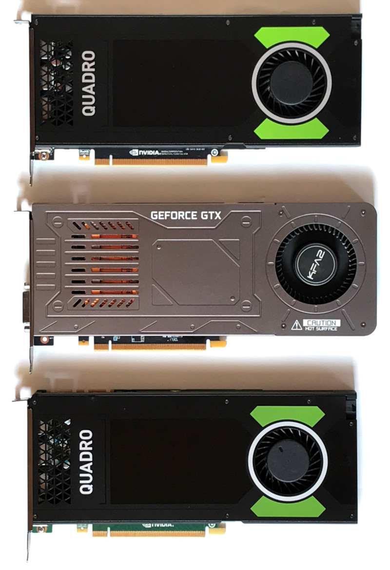 QUADRO M4000と外観はほぼ同じに見えます。同じくPASCALを搭載したGEFORCE GTX 1070 KATANAと比べると基板長は、若干短くなっています。