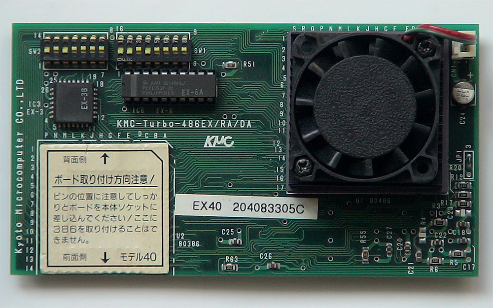 i486DX 50MHzを使用した京都マイクロコンピュータ製のPC-9801RA/DA用アクセラレータです。