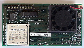 i486DX 50MHzを使用した京都マイクロコンピュータ製のPC-9801RA/DA用アクセラレータです。